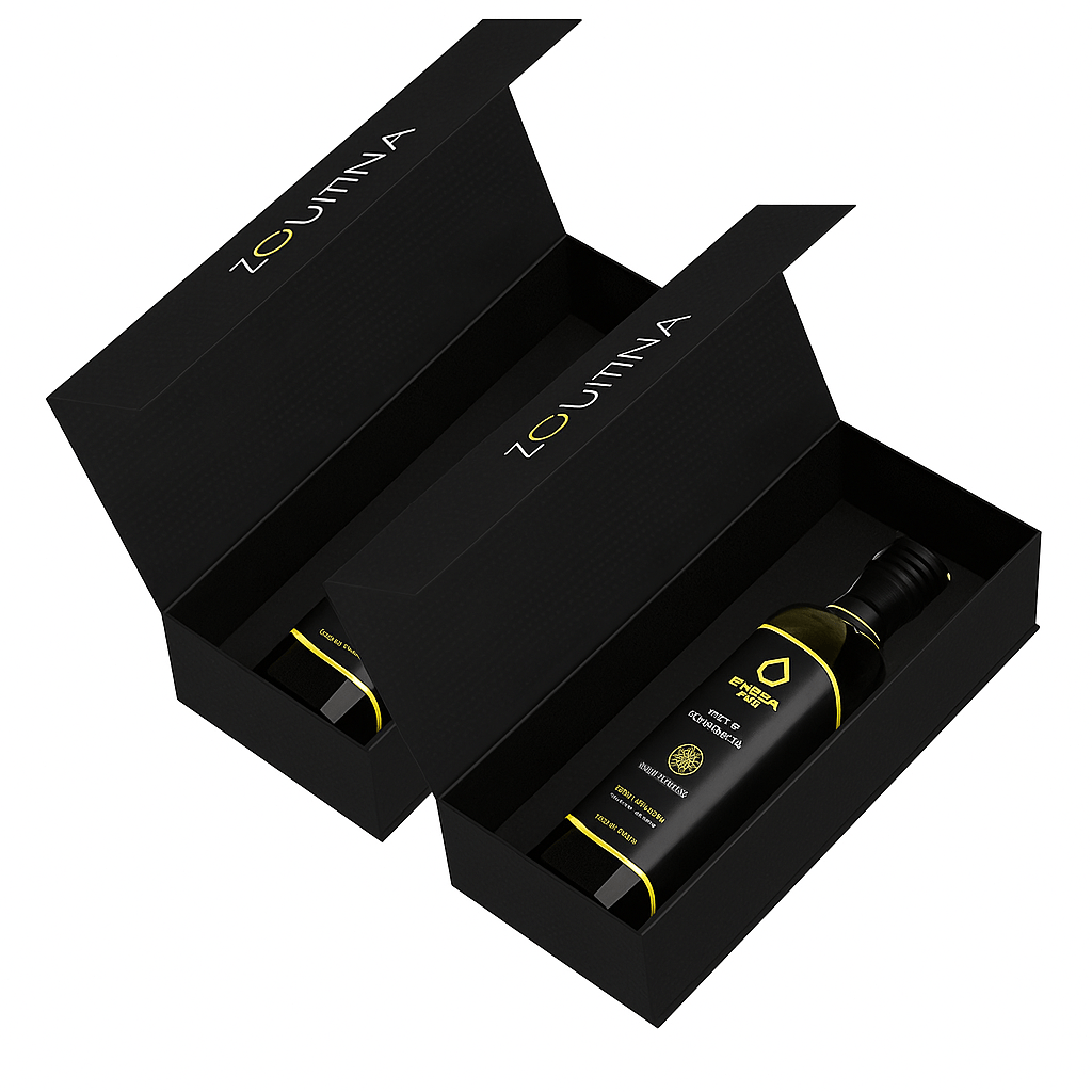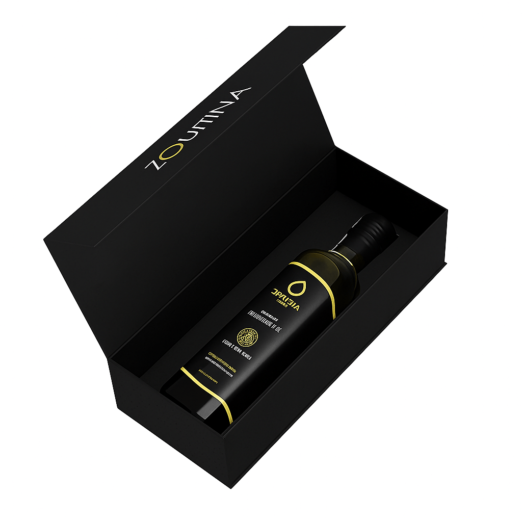 Zouitina ialah minyak zaitun extra virgin premium yang dihasilkan secara eksklusif daripada ladang milik sendiri melalui kaedah penanaman, penjagaan, dan penuaian yang teliti. Menggunakan pengekstrakan sejuk pertama dengan proses mekanikal sepenuhnya, ia menawarkan kesegaran maksimum, tahap keasidan yang sangat rendah (kurang daripada 0.2%), serta keseimbangan lemak yang sempurna untuk manfaat kesihatan yang optimum.